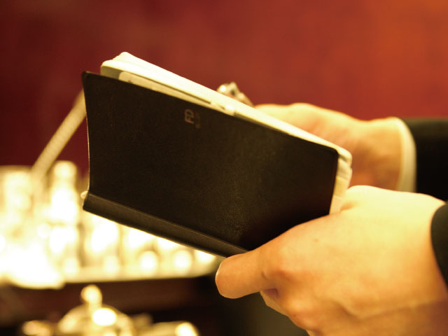 題名の由来は、タキシードに忍ばせる手帳のこと。私達は道具にこだわり、それは小物にもおよぶ。内ポケットにはモンブラン…